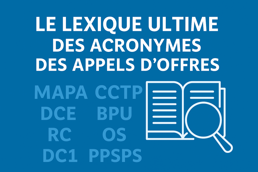 Découvrez le lexique complet des acronymes des appels d’offres BTP : MAPA, DCE, CCTP, DC1… Comprenez enfin chaque sigle pour mieux répondre et gagner vos marchés publics.